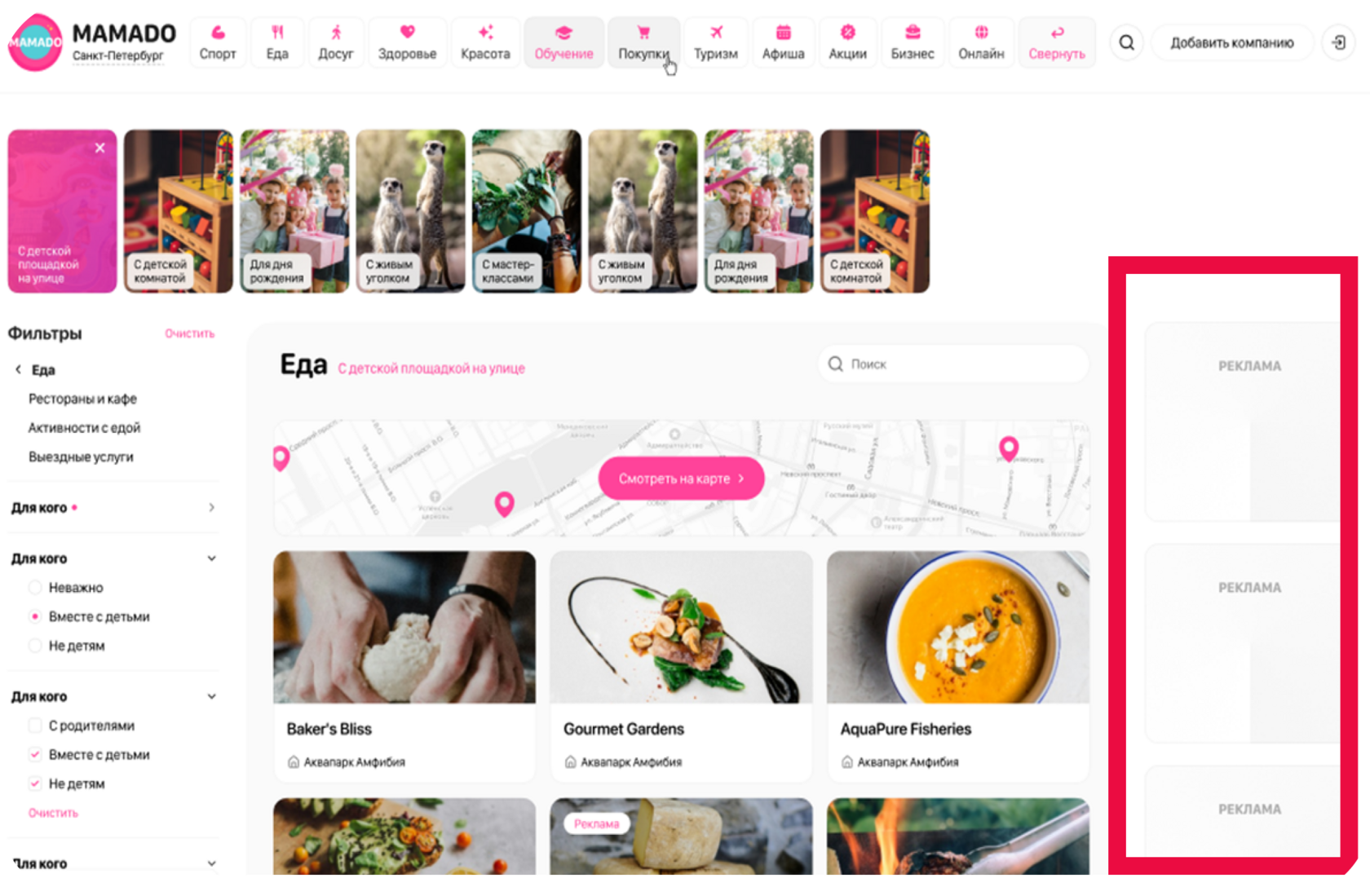 В личном кабинете Mamado вы можете самостоятельно запустить баннерную рекламу. При этом возможно выбрать геолокацию и интересы аудитории, вариант оплаты за клики или показы баннера.