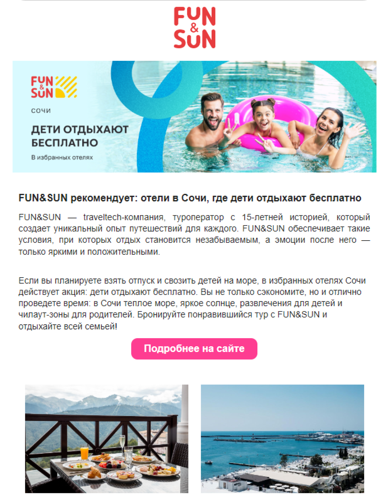Мы создаем индивидуальную e-mail рассылку, а также к каждой рассылке добавляем push-рассылку через мобильное приложение Mamado. Основная геолокация для рассылки это Москва и область. Для запуска рассылки необходимо уточнить свободные даты, так как мы берем не больше двух рассылок в неделю.