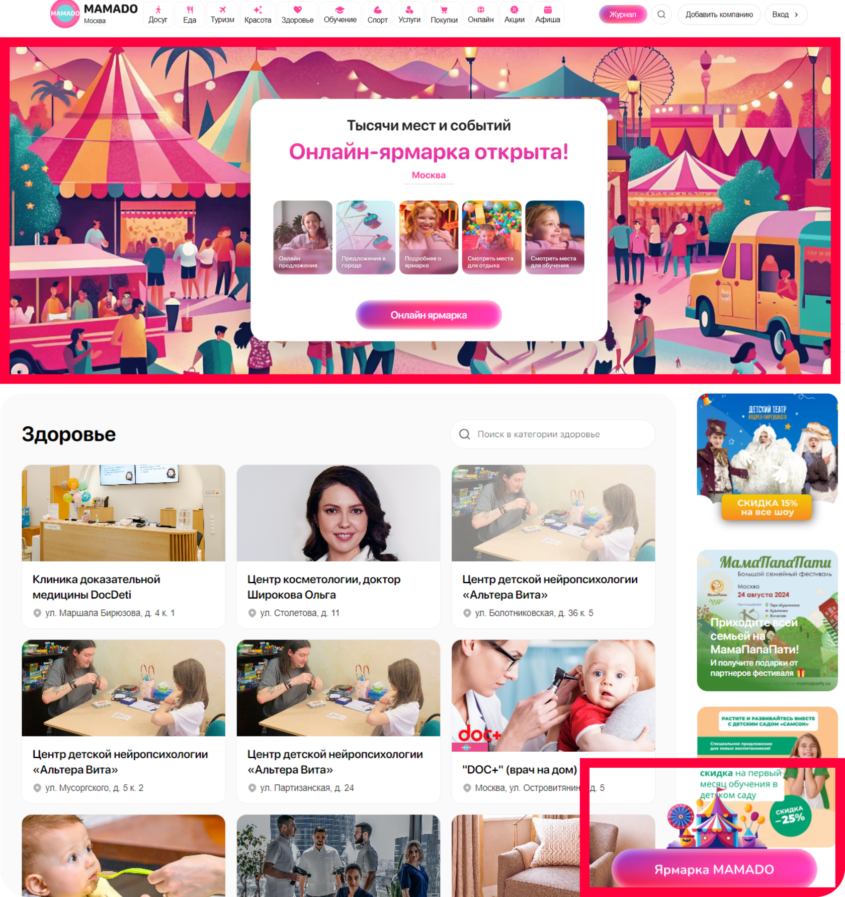 Включает приоритетное размещение в выбранной категории на сайте Mamado и в мобильном приложении Mamado. Для размещения пройдите регистрацию в Mamado и создайте компанию.