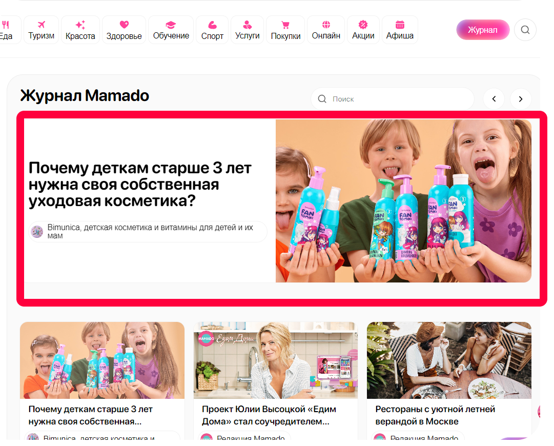 На сайте Mamado в разделе "Журнал" можно разместить индивидуальную статью. Статья должна быть: